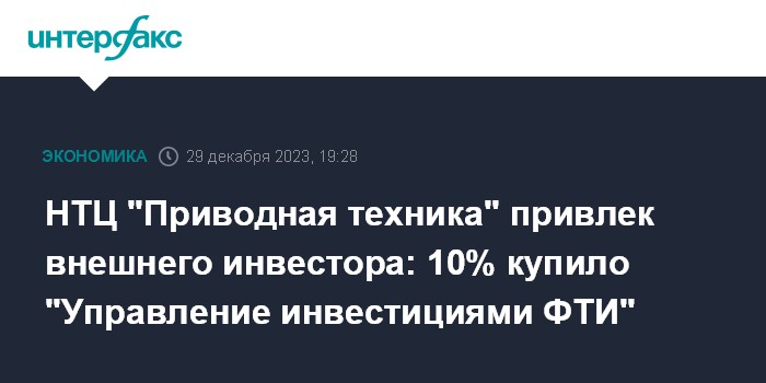 НТЦ "Приводная техника" привлек внешнего инвестора: 10% купило "Управление инвестициями ФТИ"