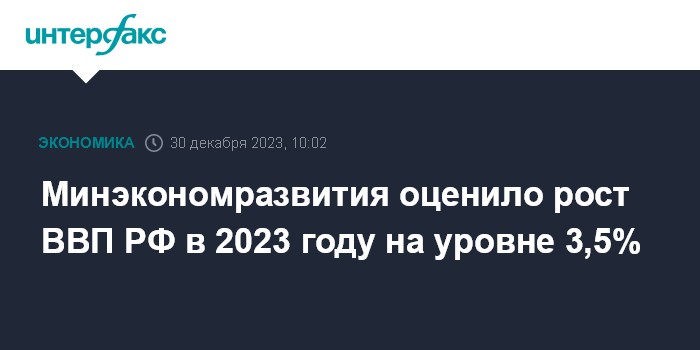 Минэкономразвития оценило рост ВВП РФ в 2023 году на уровне 3,5%
