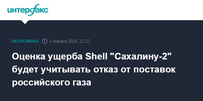 Оценка ущерба Shell "Сахалину-2" будет учитывать отказ от поставок российского газа