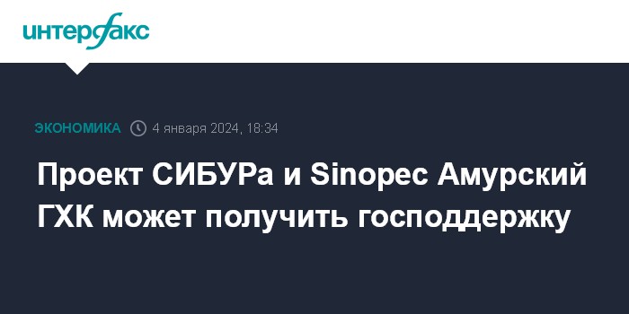 Проект СИБУРа и Sinopec Амурский ГХК может получить господдержку