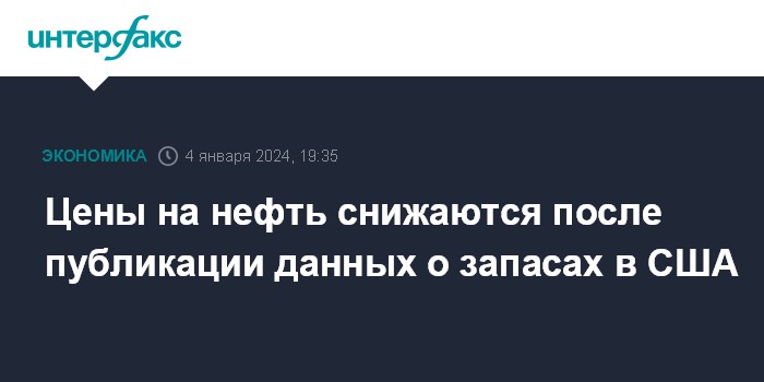 Москва. 4 января. INTERFAX.RU - Цены на нефть снижаются в четверг после публикации данных министерства энергетики США о запасах энергоносителей в стране.