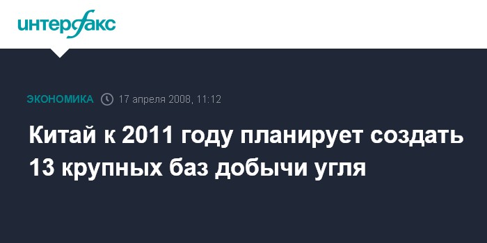 Китай к 2011 году планирует создать 13 крупных баз добычи угля