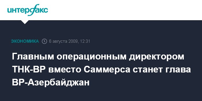 Главным операционным директором ТНК-ВР вместо Саммерса станет глава ВР-Азербайджан