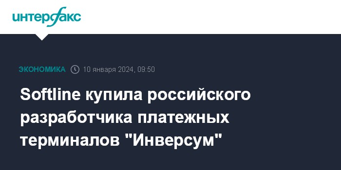 Москва. 10 января. INTERFAX.RU - ПАО "Софтлайн" объявила о приобретении компании "Инверсум", которая является российским вендором платежного оборудования.
