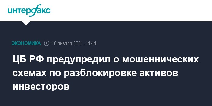 ЦБ РФ предупредил о мошеннических схемах по разблокировке активов инвесторов