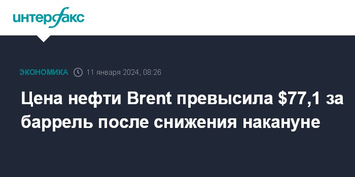 Цена нефти Brent превысила $77,1 за баррель после снижения накануне