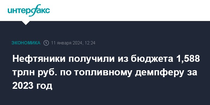 Нефтяники получили из бюджета 1,588 трлн руб. по топливному демпферу за 2023 год