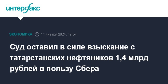 Суд оставил в силе взыскание с татарстанских нефтяников 1,4 млрд рублей в пользу Сбера