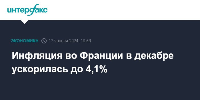 Инфляция во Франции в декабре ускорилась до 4,1%