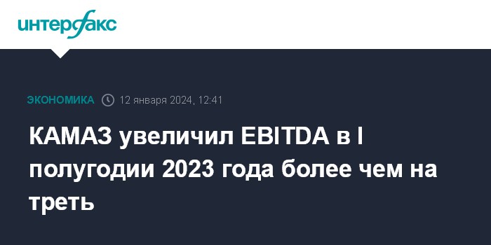 Москва. 12 января. INTERFAX.RU - Показатель EBITDA группы "КАМАЗ" за I полугодие 2023 года вырос на 35%, до почти 21 млрд руб., говорится в опубликованной компанией промежуточной консолидированной отчетности.