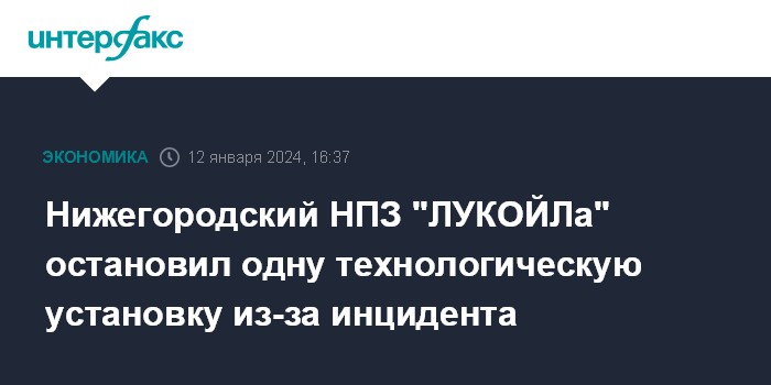 Москва. 12 января. INTERFAX.RU - НПЗ "ЛУКОЙЛа" в Нижнем Новгороде остановил работу одной из технологических установок.