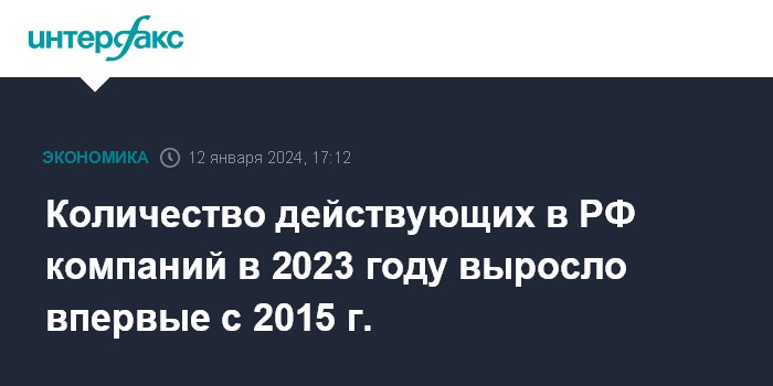 Количество действующих в РФ компаний в 2023 году выросло впервые с 2015 г.