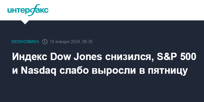 Индекс Dow Jones снизился, S&P 500 и Nasdaq слабо выросли в пятницу