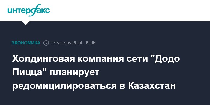 Холдинговая компания сети "Додо Пицца" планирует редомицилироваться в Казахстан