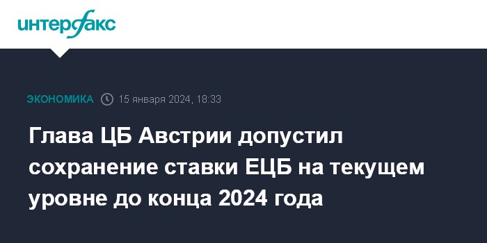 Глава ЦБ Австрии допустил сохранение ставки ЕЦБ на текущем уровне до конца 2024 года