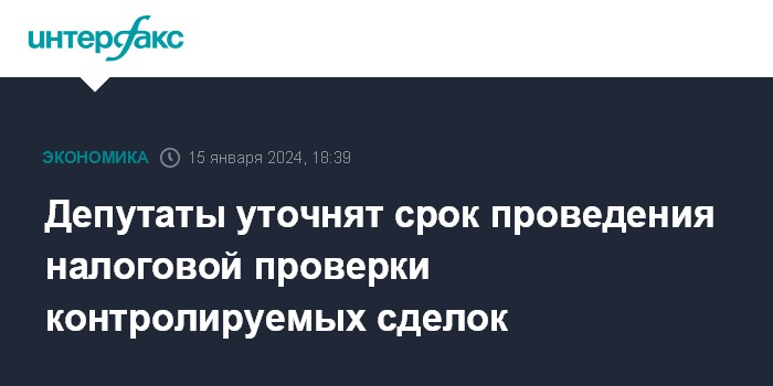 Москва. 15 января. INTERFAX.RU - Комитет Госдумы по бюджету поддержал законопроект, уточняющий срок проведения налоговой проверки контролируемых сделок. Сейчас из Налогового кодекса неясно, с какого момента начинается двухлетний срок - с подачи первичного или уточненного уведомления о сделке в ФНС.