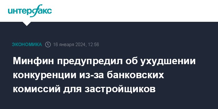 Минфин предупредил об ухудшении конкуренции из-за банковских комиссий для застройщиков