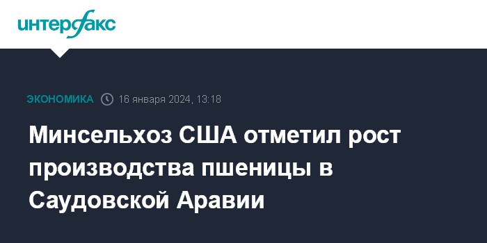 Минсельхоз США отметил рост производства пшеницы в Саудовской Аравии