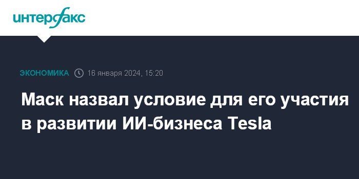 Москва. 16 января. INTERFAX.RU - Создатель производителя электромобилей Tesla Илон Маск не хочет развивать в компании направление искусственного интеллекта (ИИ) и робототехники без голосующей доли на уровне 25%. Он написал об этом в соцсети.