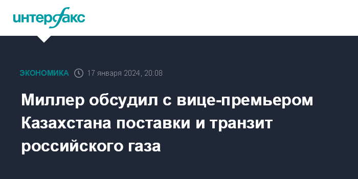Миллер обсудил с вице-премьером Казахстана поставки и транзит российского газа