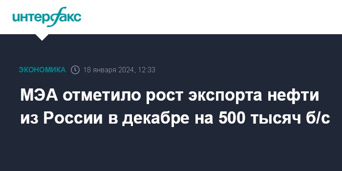 МЭА отметило рост экспорта нефти из России в декабре на 500 тысяч б/с