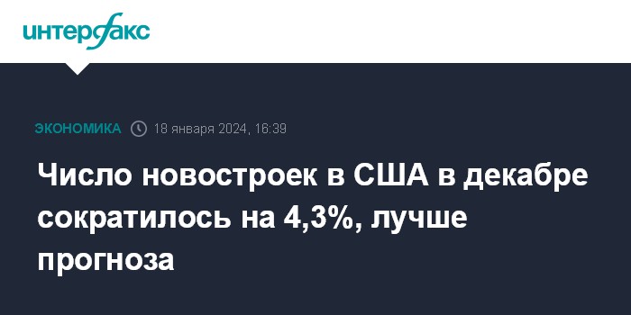 Число новостроек в США в декабре сократилось на 4,3%, лучше прогноза