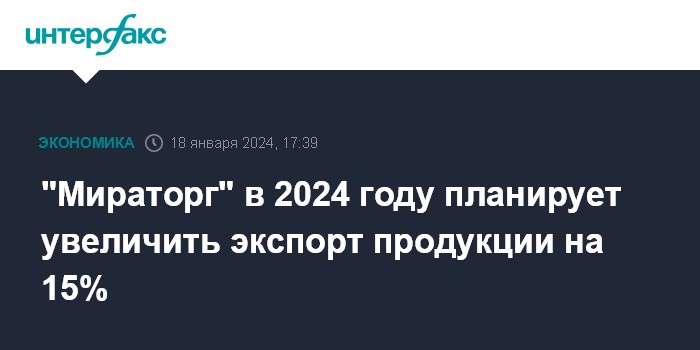 "Мираторг" в 2024 году планирует увеличить экспорт продукции на 15%