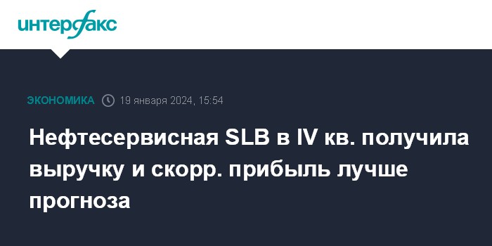 Москва. 19 января. INTERFAX.RU - Американская нефтесервисная компания SLB (ранее известная как Schlumberger) в четвертом квартале 2023 года увеличила чистую прибыль на 4%, при этом скорректированный показатель и выручка превзошли ожидания рынка.