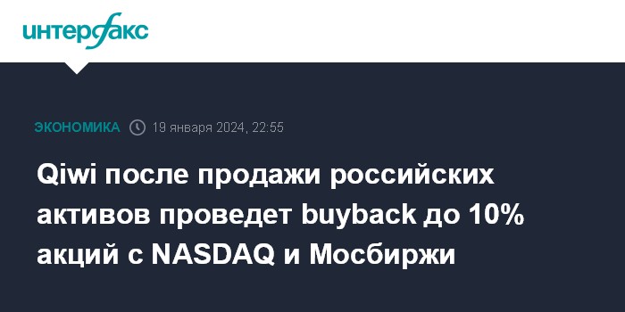 Qiwi после продажи российских активов проведет buyback до 10% акций с NASDAQ и Мосбиржи