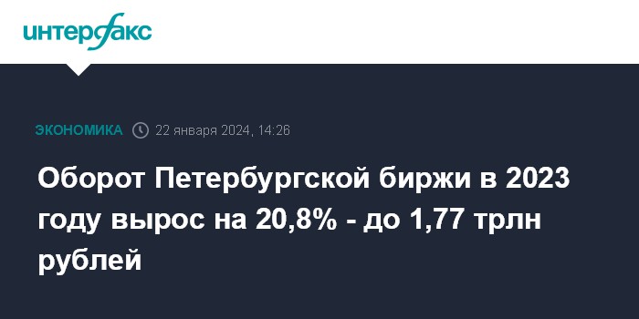 Оборот Петербургской биржи в 2023 году вырос на 20,8% - до 1,77 трлн рублей