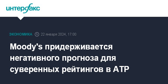 Moody's придерживается негативного прогноза для суверенных рейтингов в АТР