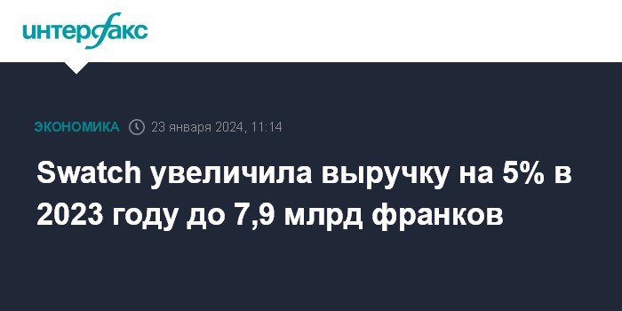 Swatch увеличила выручку на 5% в 2023 году до 7,9 млрд франков