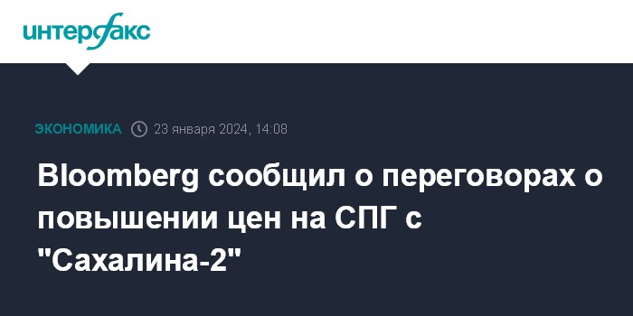 Москва. 23 января. INTERFAX.RU - Оператор завода по сжижению природного газа (СПГ) "Сахалин-2", ООО "Сахалинская энергия" (ранее Sakhalin Energy), в конце 2023 года в рамках регулярного пересмотра цен, проводимого каждые пять лет, начал переговоры с клиентами в Северной Азии о повышении цен, сообщает Bloomberg со ссылкой на источники, знакомые с ситуацией.