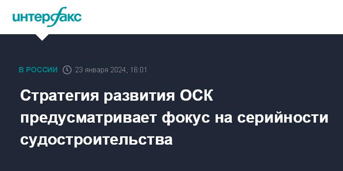 Москва. 23 января. INTERFAX.RU - Разрабатываемая стратегия развития "Объединенной судостроительной корпорации" (ОСК) сфокусирована на серийном строительстве судов, создании новых производственных мощностей и специализации верфей.