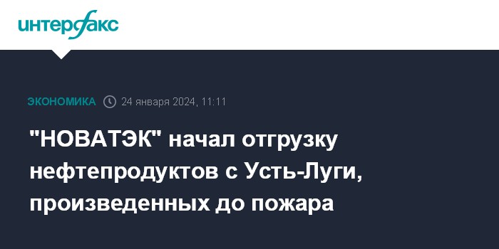 Москва. 24 января. INTERFAX.RU - "НОВАТЭК-Усть-Луга" начал отгрузку нефтепродуктов после возгорания на комплексе, произошедшего в воскресенье, следует из информации с сайтов отслеживания судов.