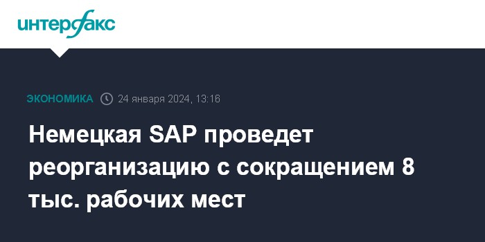 Компания объявила, что в этом году проведет реструктуризацию операций, в результате которой сократит 8 тыс. рабочих мест. Расходы на реструктуризацию составят порядка 2 млрд евро, и основная их часть будет отражена в результатах SAP за первое полугодие.