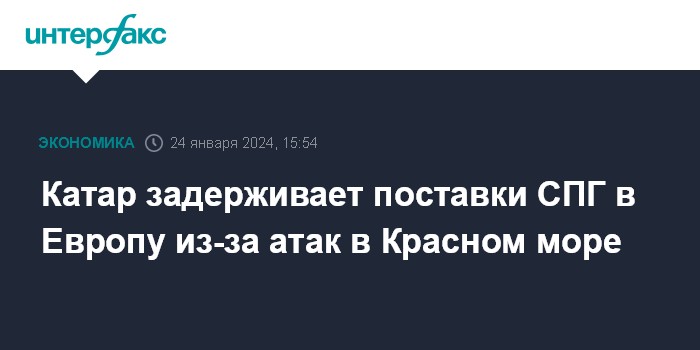 Москва. 24 января. INTERFAX.RU - Катар, один из крупнейших экспортеров сжиженного природного газа (СПГ), сдвигает сроки поставок в Европу в связи с атаками йеменских повстанцев-хуситов в Красном море, сообщил Bloomberg со ссылкой на источники.
