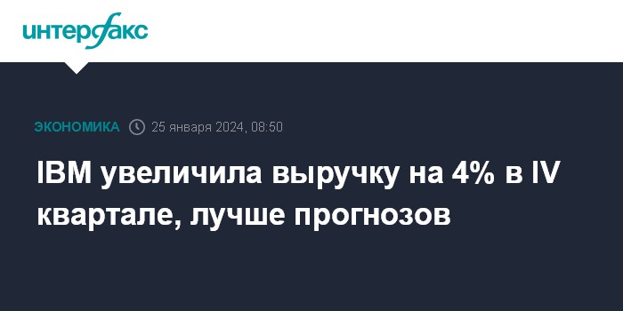 Москва. 25 января. INTERFAX.RU - Американская International Business Machines (IBM) отчиталась о росте прибыли и выручки по итогам четвертого квартала 2023 года, причем оба показателя оказались лучше прогнозов.