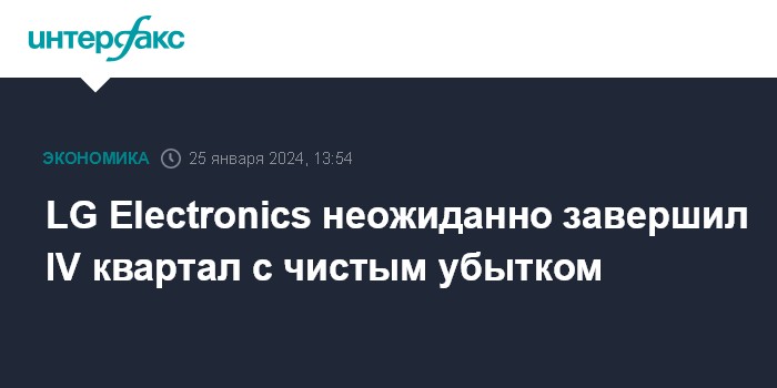 Москва. 25 января. INTERFAX.RU - Южнокорейский производитель потребительской электроники LG Electronics зафиксировал чистый убыток в четвертом квартале, что стало неожиданностью для аналитиков.