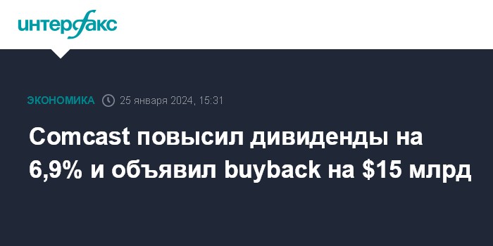 Comcast повысил дивиденды на 6,9% и объявил buyback на $15 млрд