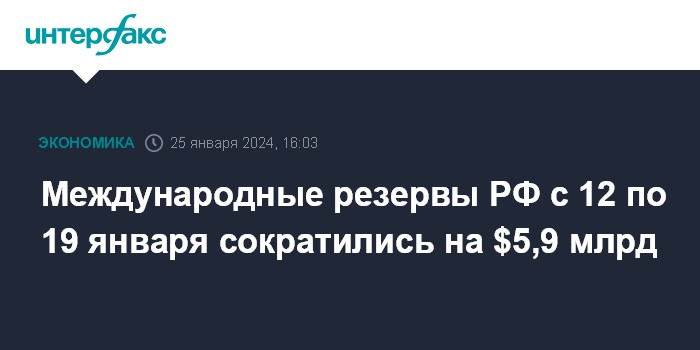 Международные резервы РФ с 12 по 19 января сократились на $5,9 млрд