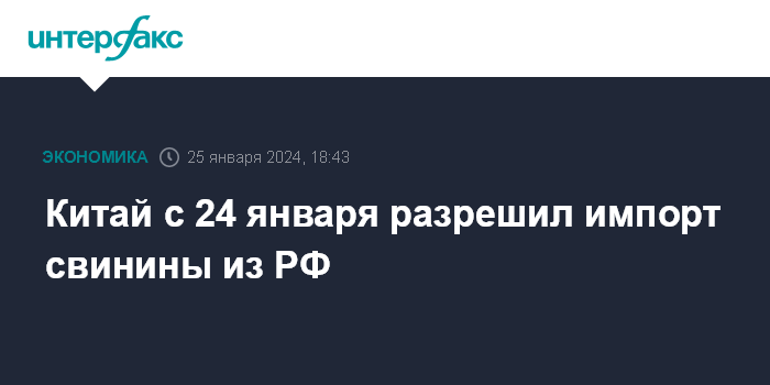 Китай в сентябре 2023 года отменил ограничения на поставки свинины из России. Это решение было принято по результатам оценки рисков и анализа системы государственного контроля африканской чумы свиней (АЧС) в России. 19 декабря 2023 года в Пекине был подписан протокол об инспекционных, карантинных и ветеринарно-санитарных требованиях к свинине из России, в конце декабря – утвержден ветеринарный сертификат. Это дало РФ право на экспорт свинины на китайский рынок.