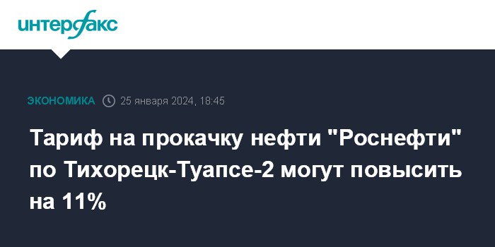 Как заявили "Интерфаксу" в ФАС, изменение тарифа на транспортировку нефти по маршруту "Тихорецк-Туапсе-2" предусмотрено законодательством.