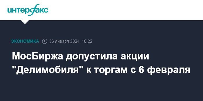 МосБиржа допустила акции "Делимобиля" к торгам с 6 февраля