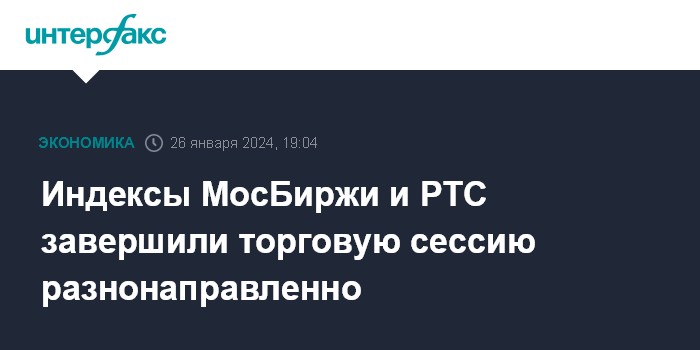 Индексы МосБиржи и РТС завершили торговую сессию разнонаправленно