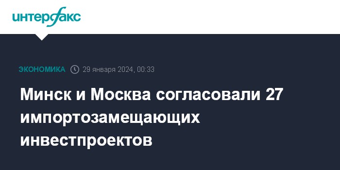 Минск и Москва согласовали 27 импортозамещающих инвестпроектов