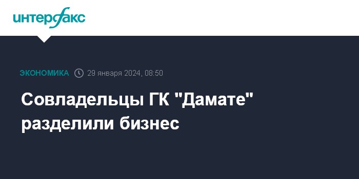 Москва. 29 января. INTERFAX.RU - Совладельцы ГК "Дамате", производителя мяса индейки, утки, баранины и молочных продуктов, Наум Бабаев и Рашид Хайров разделили бизнес.