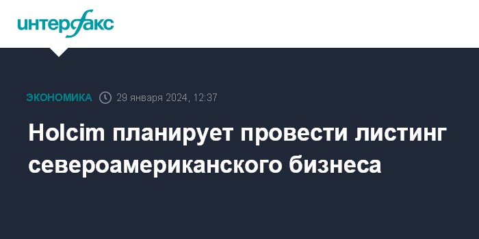 Москва. 29 января. INTERFAX.RU - Швейцарский производитель стройматериалов Holcim Ltd. намерен выделить в отдельную фирму свои активы в Северной Америке.