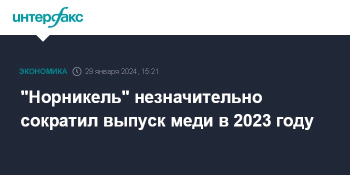 "Норникель" незначительно сократил выпуск меди в 2023 году