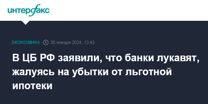 В ЦБ РФ заявили, что банки лукавят, жалуясь на убытки от льготной ипотеки